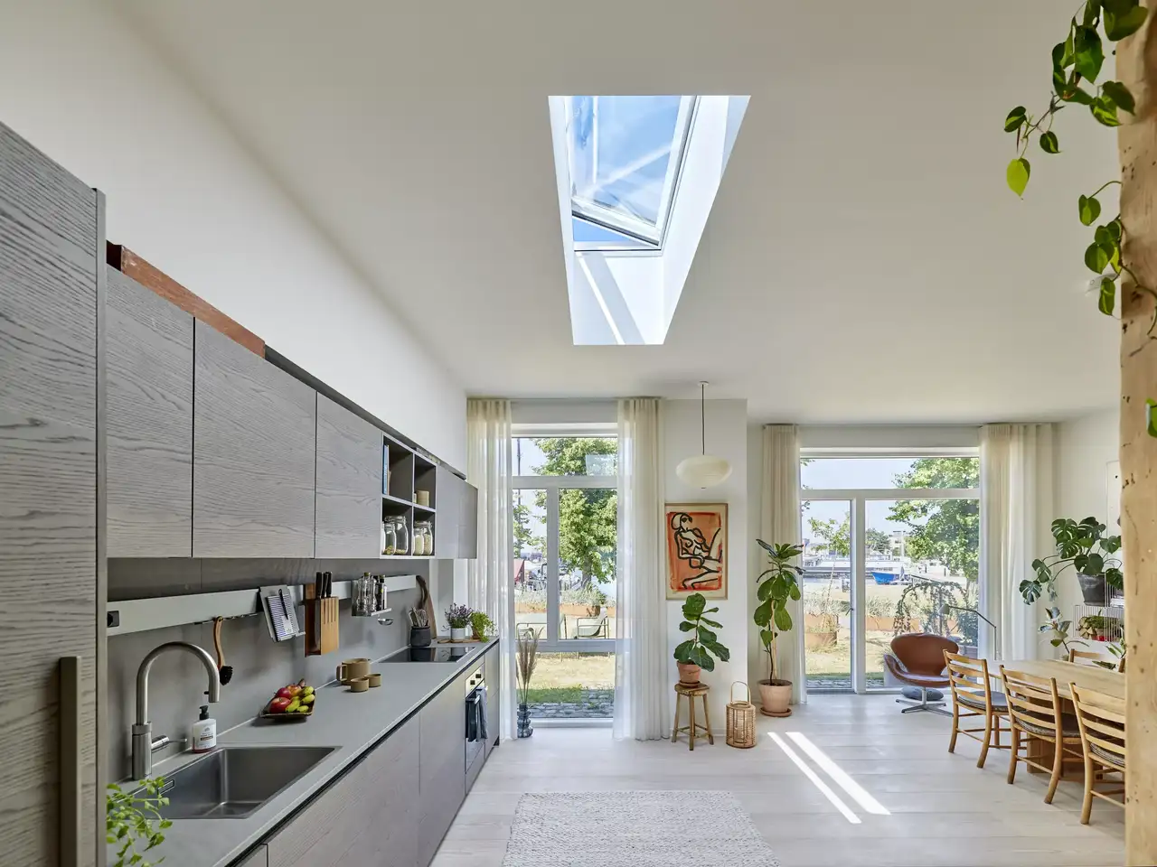 - Vėdinimas: stogo langai ypač tinka tokioms patalpoms kaip virtuvė ir vonios kambarys, nes jie padeda šalinti drėgmę, maisto kvapus ir garus, užtikrindami gaivesnę ir sveikesnę patalpų aplinką.
